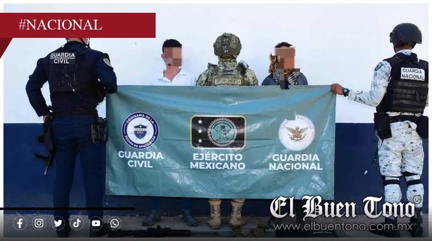 Apatzingán, Michoacán.— En un operativo conjunto de fuerzas federales y estatales, se detuvo a dos presuntos integrantes de crimen organizado y se aseguraron armas, explosivos y equipo táctico en la comunidad de Lindero. Los detenidos fueron identificados como Genoveva ‘N’, La Güera, y Genio ‘N’, El Yanki. Entre lo decomisado se encuentran tres armas largas, 220 cartuchos, diez cargadores de distintos calibres y equipo táctico.