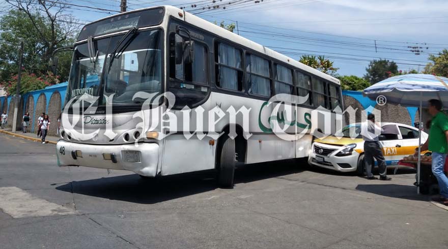 Córdoba. – Un autobús de la línea Plateados, marcado con el número 48, provocó un choque contra un taxi de Córdoba, cuando se le cruzó en la avenida 6 y calle 23 A, junto a la clínica 61 del IMSS. El accidente dejó solo daños materiales y afectaciones a la vialidad, luego de que ambos conductores no llegaran a un acuerdo.