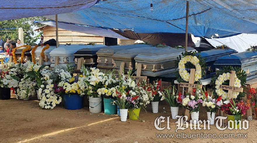 Chilpancingo, Guerrero.- Pobladores de la comunidad de Chautipan, ubicada en la Sierra de Chilpancingo, despidieron este sábado a once de sus familiares en un emotivo y doloroso entierro realizado a las 4 de la tarde en el panteón local. Los fallecidos, entre ellos dos mujeres, cuatro adolescentes y cinco hombres, fueron velados en un patio de la comunidad, donde se alinearon los ataúdes para el último adiós.
