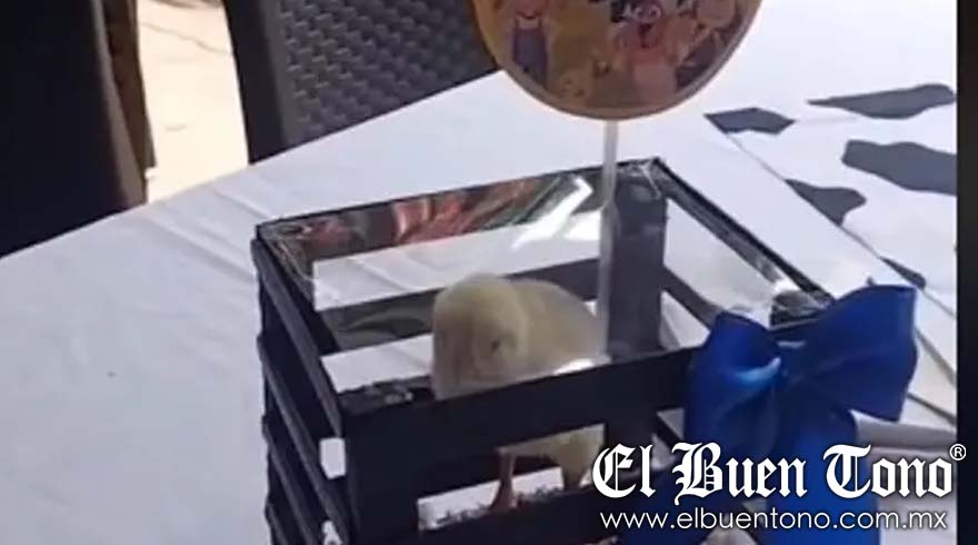 En el video, se puede ver a un pollito atrapado dentro de un centro de mesa, con la parte superior cubierta de papel celofán para evitar su escape. El usuario, identificado como veganoporerror, hizo un llamado urgente a detener esta cruel práctica.