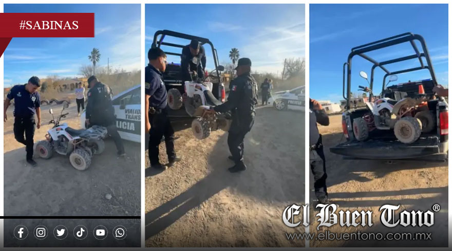 Coahuila.- Una niña de nueve años fue multada por elementos de la Policía Municipal de Sabinas, luego de que su cuatrimoto fuera asegurada y enviada al corralón, tras reportes ciudadanos por el ruido y el polvo que generaba mientras circulaba en un campo de la localidad.
