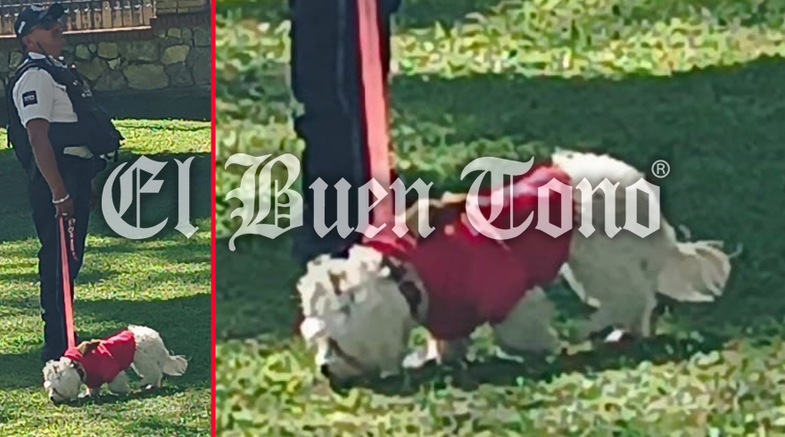 En los jardines del Poliforum Cultural de Mier y Pesado, uno de los sitios más emblemáticos de la ciudad, los visitantes se encuentran con una escena peculiar: Un policía con chaleco antibalas y equipo táctico paseando al perro de algún funcionario municipal con oficina en el lugar.