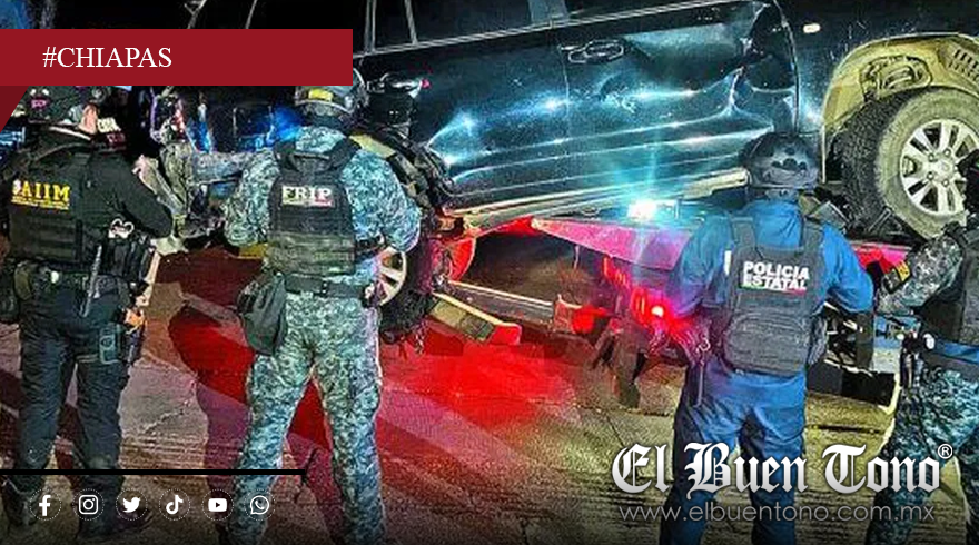 Chiapas.- Un fuerte enfrentamiento entre fuerzas de seguridad y presuntos integrantes del crimen organizado dejó un saldo de cuatro agresores muertos este fin de semana en Frontera Comalapa, Chiapas, cerca de la frontera con Guatemala. Según reportes oficiales, los sujetos armados atacaron a los elementos con rifles de alto poder y granadas, lo que desató un operativo encabezado por la Fuerza de Reacción Inmediata Pakal (FRIP), la Policía Estatal Preventiva (PEP), la Fiscalía General del Estado (FGE) y la Secretaría de Seguridad y Protección Ciudadana (SSPC).