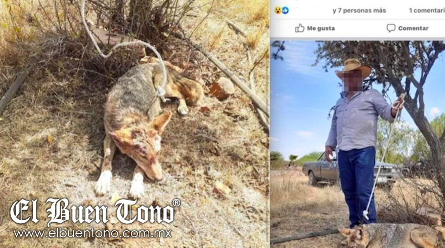 En el mensaje, se incluyen las fotografías en las que se aprecia al coyote, atado y lastimado de la cara.