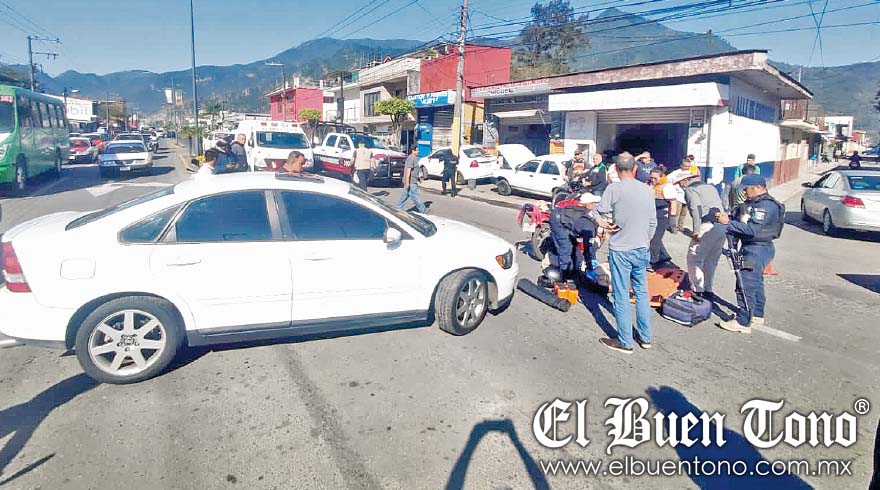 El accidente ocurrió cuando el conductor del automóvil de color blanco, intentaba incorporarse a la avenida principal. Al no tomar las debidas precauciones arrolló al motociclista que circulaba con la preferencia en una unidad rojinegra, desde la cabecera municipal de Orizaba.