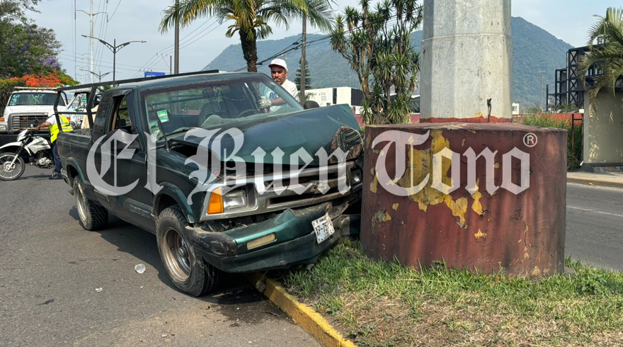 Una posible falla mecánica en la dirección hidráulica provocó que una camioneta pickup de color verde marca Chevrolet tipo FX2 Sport placas XP7593A se impactara contra un poste de la Comisión Federal de Electricidad.