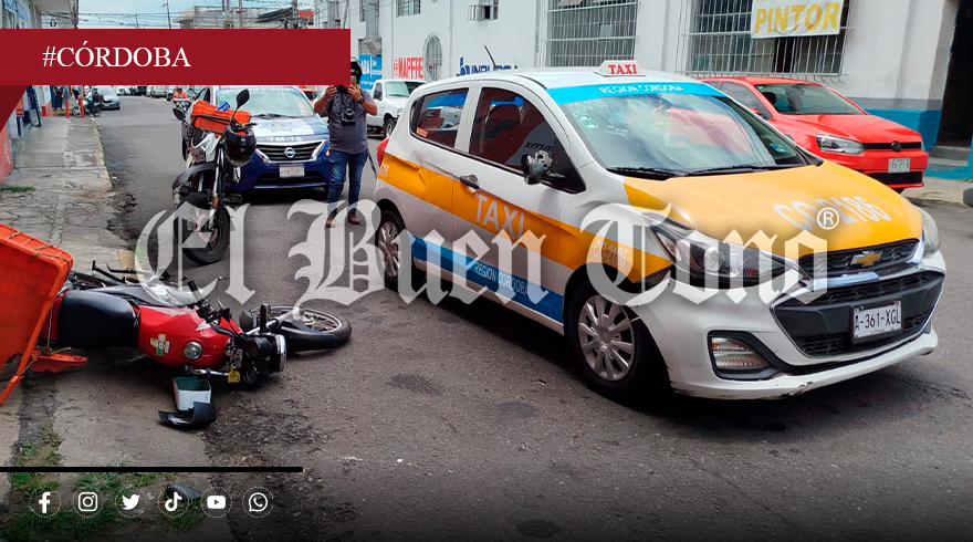 Córdoba.- Un joven motociclista que intentó rebasar por la derecha a un taxi de Córdoba, marcado con el número CO-2186, fue impactado en la avenida 5, entre calles 21 y 19 de la colonia centro.