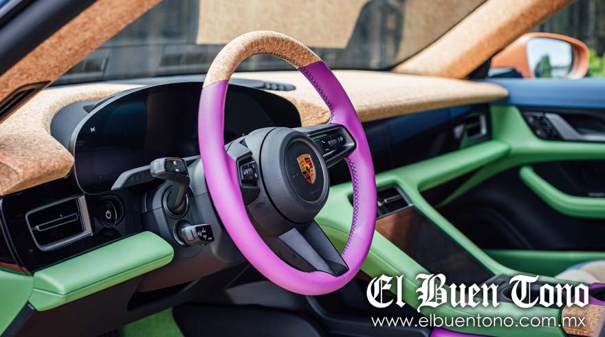 Su llamativo exterior, pintado en un estilo de bloques de color, fue una de las piezas más llamativas del festival South by Southwest de Austin, Texas, celebrado en marzo. Ahora, Porsche muestra por primera vez el interior de ese art car, donde el alegre patrón de colores continúa con el Azul Nash, el Durazno Sean, el Morado Loretta y el Verde Ashley. El corcho en el tablero, el volante y la consola central crea un contraste visual, mientras que la pana añade otro rasgo distintivo. El revestimiento del techo, el centro de los asientos y los parasoles están tapizados con este material en color Beis Atacama. Este estricto vegano quiso que el habitáculo no tuviera cuero, una opción que también puede elegir cualquier cliente de un Taycan.