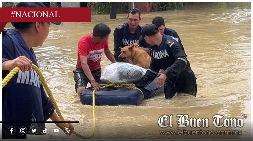 En Poza Rica, tras el desbordamiento del Río Cazones, 1,236 elementos navales han apoyado a más de 2,000 personas con 70 atenciones médicas, 600 traslados a albergues, limpieza de cinco vías de comunicación y recolección de cinco toneladas de basura.