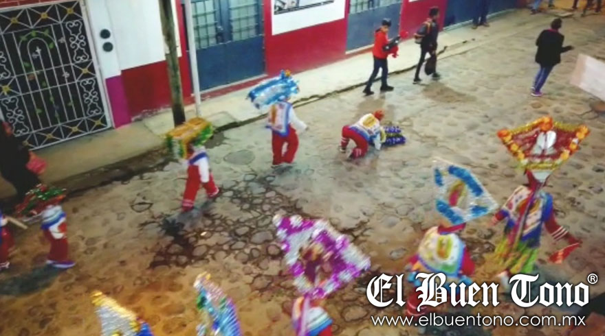 En videos captados se muestra el momento en que otro de los danzantes cae dentro de un socavón y termina en el suelo, los hechos se registraron en la cabecera municipal mientras que otras calles que conducen al parque temático ya ni siquiera cuentan con piedras y en ellas hay señalamientos con cinta amarilla precautoria para evitar el paso de las unidades.