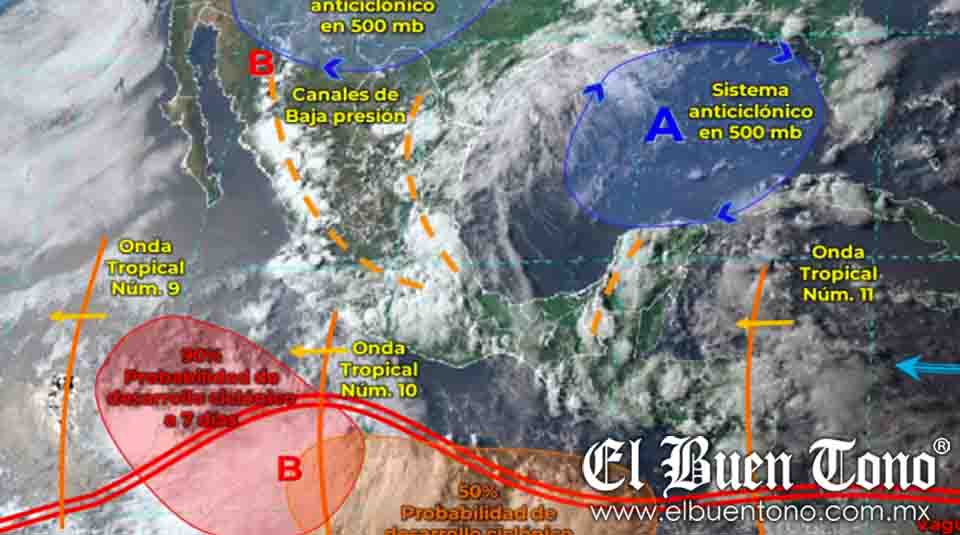 De acuerdo a la Comisión Nacional del Agua (Conagua), persistirán los dos canales de baja presión desde el noreste hasta el sur del país y desde el noroeste hasta la Mesa Central, generando chubascos y lluvias puntuales fuertes con descargas eléctricas y posible granizo.