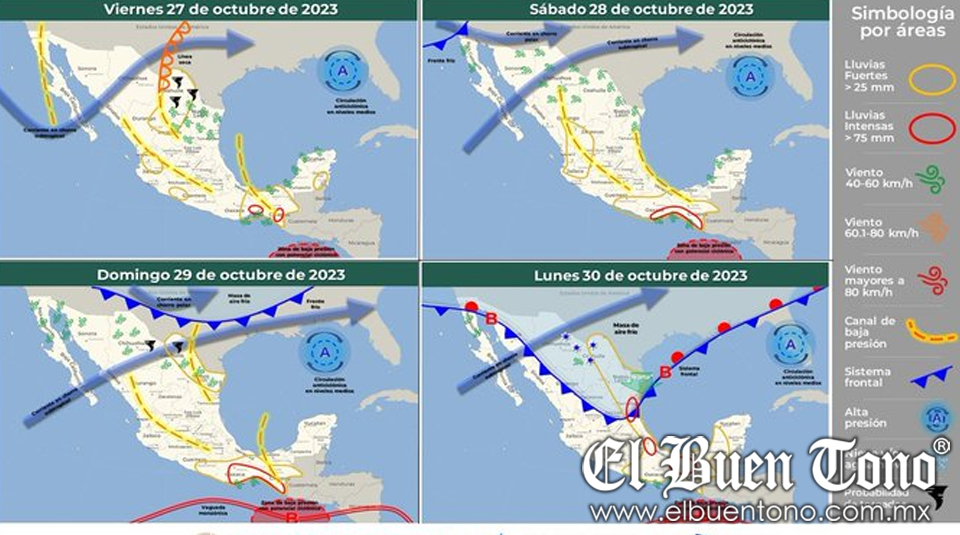 En cuanto a las lluvias para el viernes 27 de octubre, se esperan las siguientes condiciones en varios estados de México:
