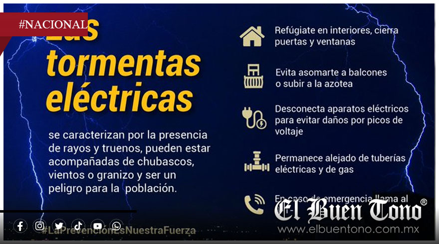 El SMN indicó que la combinación de una vaguada en altura, el ingreso de humedad del océano Pacífico, Golfo de México y Mar Caribe, así como condiciones de inestabilidad, provocarán chubascos y lluvias fuertes acompañadas de descargas eléctricas y posible caída de granizo.