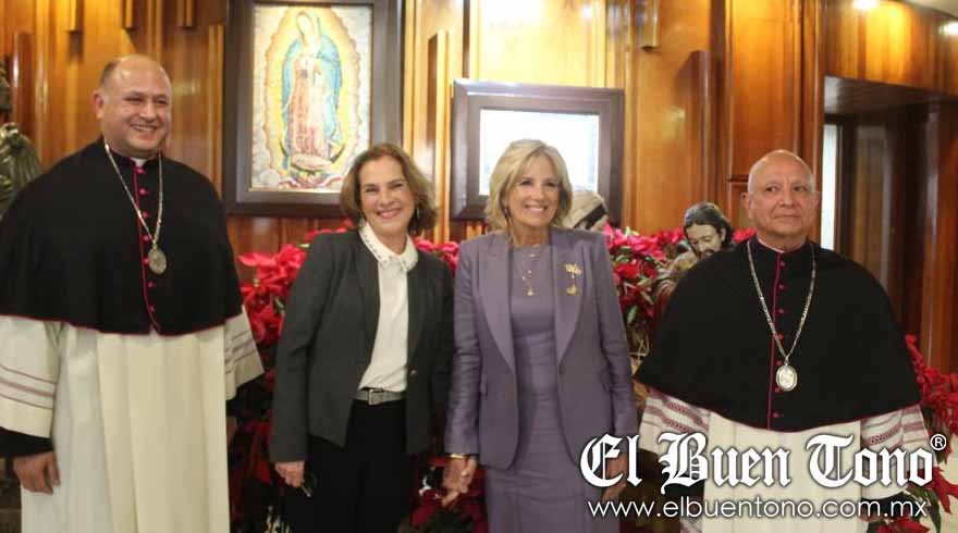Jill Biden, primera dama de Estados Unidos, visitó la Basílica de Guadalupe en su parada tras aterrizar en el Aeropuerto Internacional de la Ciudad de México (AICM), acompañada por Beatriz Gutiérrez Müller, esposa del presidente Andrés Manuel López Obrador.