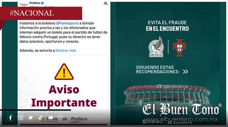 Ciudad de México.— La Procuraduría Federal del Consumidor (Profeco) solicitó información completa a Fanki, la plataforma encargada de la venta de boletos para el partido entre México y Portugal, que se jugará el 28 de marzo de 2026 a las 19:00 horas en el Estadio Azteca, ahora Banorte. La Profeco instó a la boletera a ofrecer datos claros y precisos a los aficionados e incluso a establecer una línea de comunicación para proteger los derechos de los consumidores.