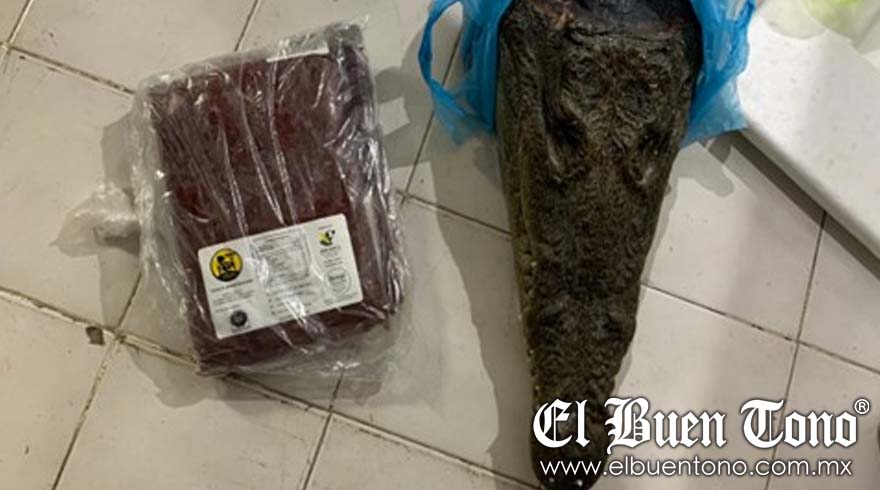 “Ante la falta de documentación que acreditara la legal procedencia de carne de búfalo de agua y una cabeza entera de cocodrilo, así como la ausencia de registro para la comercialización de ejemplares vivos, partes y derivados de vida silvestre, se realizó el aseguramiento”, señaló la Profepa.