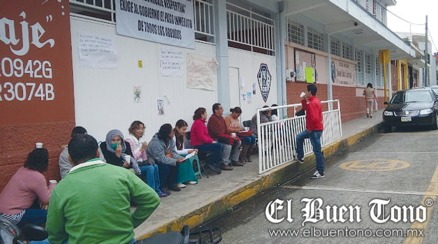 Los inconformes solicitan el pago inmediato de nivelación salarial, no retener el dinero que llega de la Federación para sus percepciones, respeto y trato digno, además de quincenas puntuales, entre otros.