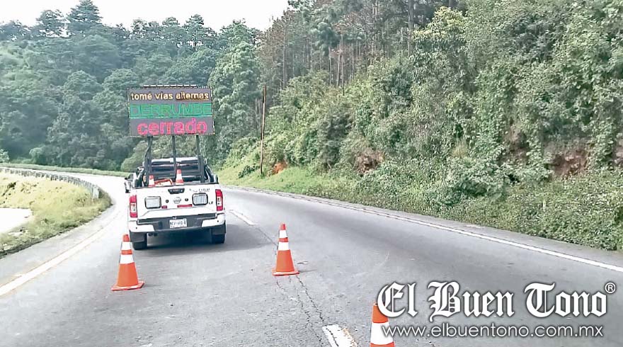 Maltrata.- Debido a que continúa el cierre de la circulación por atención al deslizamiento del talud, en la autopista Acatzingo-Ciudad Mendoza, kilómetro 231, dirección Acatzingo, el tránsito de camiones pesados por esta vía se prohibió por lo estrecha que es.