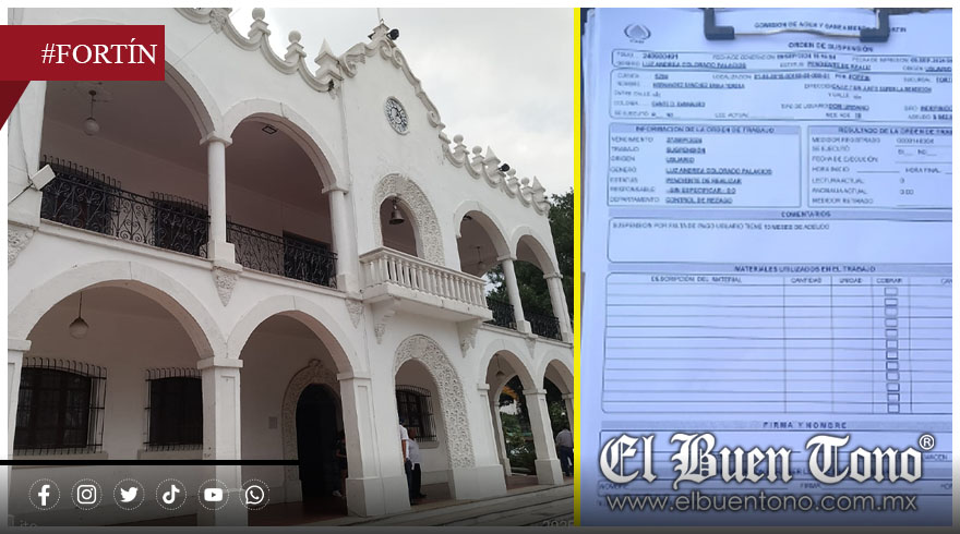 Documentos oficiales de la Comisión de Agua y Saneamiento de Fortín (CASF) revelan que Erika Teresa Hernández Sánchez, empleada municipal y actual asistente particular del presidente Gerardo Rosales Victoria, cuenta con una orden de suspensión por tener más de 10 meses de adeudo en el pago del servicio de agua potable, que asciende a 842.57 pesos. Pese a ello, no se le ha ejecutado el corte, a diferencia del trato que reciben ciudadanos comunes.