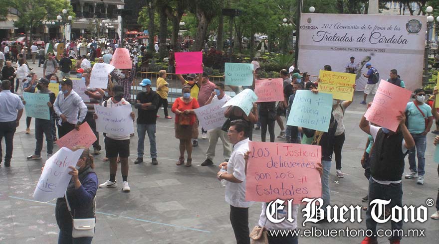 Córdoba.- La fiesta por la conmemoración del 202 aniversario de la firma de los Tratados de Córdoba, se vio empañada por un grupo de personas, quienes protestaron de forma pacífica por haber sido detenidas sin decirles el motivo, por la Policía Estatal y Fuerza Civil.