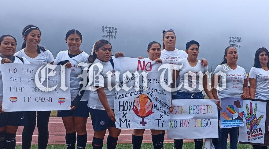 Con una lona y cartulinas “Si me insultas, me pegas, me amenazas. No amas el fútbol ni a las mujeres, sin respecto no hay juego” se manifestaron.