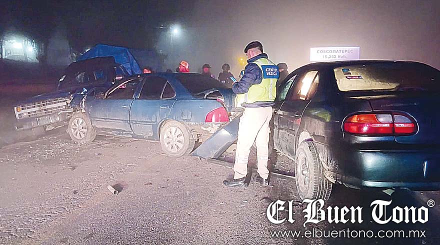 COSCOMATEPEC.- Un conductor en estado de ebriedad provocó una carambola, al chocar contra un automóvil y una camioneta, sobre la carretera federal Fortín-Huatusco, a la altura de la entrada a Coscomatepec.