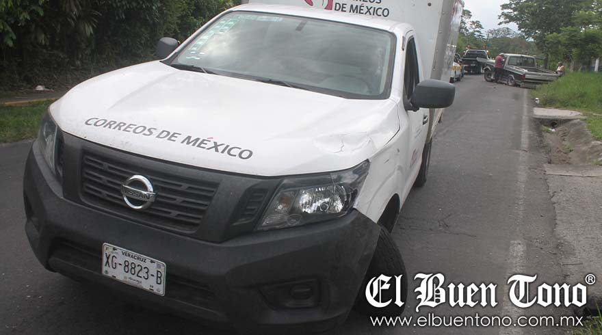 Córdoba.- Una camioneta de Correos Mexicanos provocó un choque contra otra camioneta, luego de que una de las llantas delanteras se salió de su eje, al circular sobre el Camino Real a Los Cerezos, a la altura la colonia Los Filtros.