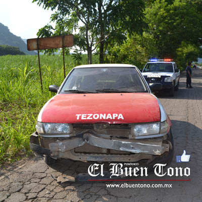 Tezonapa.- El conductor de un taxi pirata que circulaba por la carretera estatal Tezonapa-Laguna Chica, provocó un choque a la altura de la entrada a la Luisa, al intentar rebasar un autobús el conductor del coche pirata no se percató de que una camioneta iba con rumbo a Laguna Chica y al ver que se le venía encima intentó librar el golpe pero no fue posible.