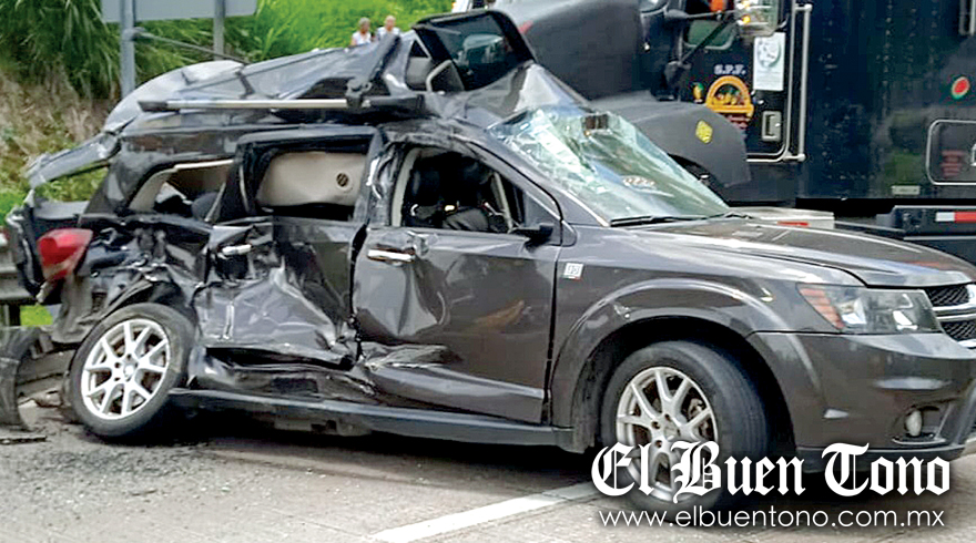 Al no poder detener su marcha, el torton embistió a una camioneta marca Dodge Journey de color negro, matrícula YXX-64-27 del estado, en la que viajaba una familia, aunque afortunadamente no hubo personas lesionadas tras la colisión.