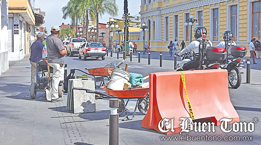 Ya se ha vuelto recurrente observar a una cuadrilla de trabajadores con carretilla, losetas rotas a punto del escombro, señalamientos de precaución en alguna parte de esta arteria y las largas filas de automóviles tratando de avanzar.