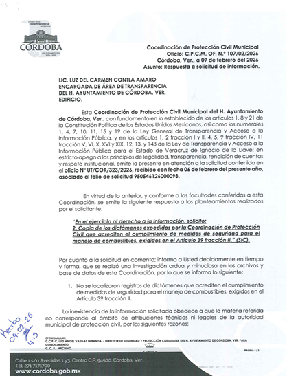 Córdoba, Ver.- Protección Civil y la Jefatura de Comercio muestran omisiones alarmantes que dejan a la población expuesta a riesgos y a un marco regulatorio sin sustento documental.