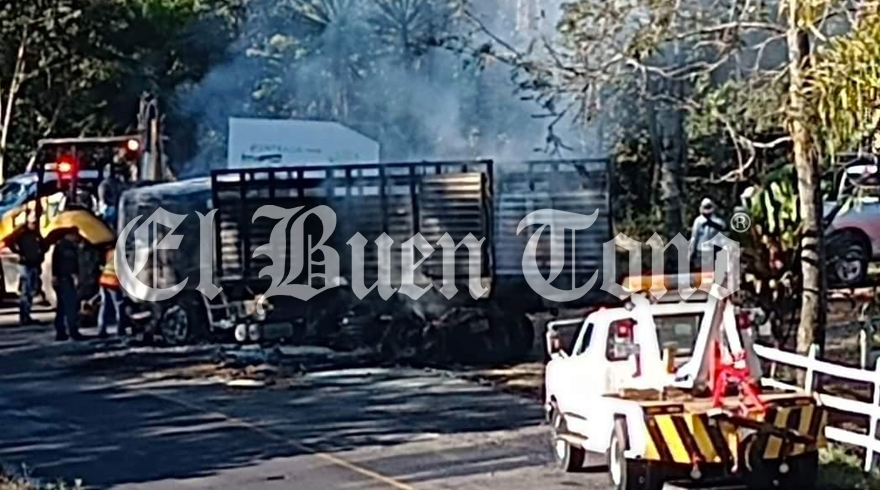 Sochiapa.- Un camión de carga pesada que transportaba unas estructuras metálicas se incendió la mañana de este lunes mientras circulaba sobre la carretera federal Huatusco-Totutla a la altura de la entrada al municipio de Sochiapa, al lugar arribaron los grupos de emergencia pero nada pudieron hacer, el vehículo quedó reducido a cenizas.