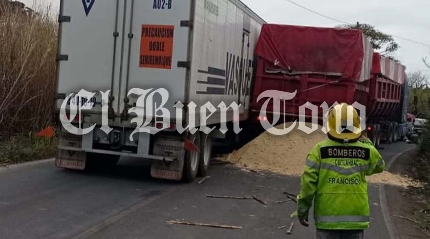 Cuitláhuac.- La tarde de este viernes, un tractocamión tipo tolva con doble remolque, con la razón Social ‘Coordinadora de Transporte de Carga Pesada Veracruz’ se quedó varado sobre la carretera Estatal Omealca-Yanga, a la altura de San José de Abajo, debido a una falla mecánica. Tras quedar varado el tractocamión fue impactado por otro camión con razón social ‘Transportes Vázquez’ debido a que el imprudente conductor, trató de pasar golpeándolo de modo lateral, provocando que se regara parte de la carga de azúcar mascabado que llevaba la tolva. Al lugar arribaron bomberos del municipio de Cuitláhuac, con base en San José de Abajo, quiénes abanderaron el lugar para evitar otro accidente. Fueron lugareños quienes con carretillas, cubetas y camionetas se encargaron de recoger el producto que quedó tirado sobre la carpeta asfáltica. Este incidente por fortuna no registró personas lesionadas.