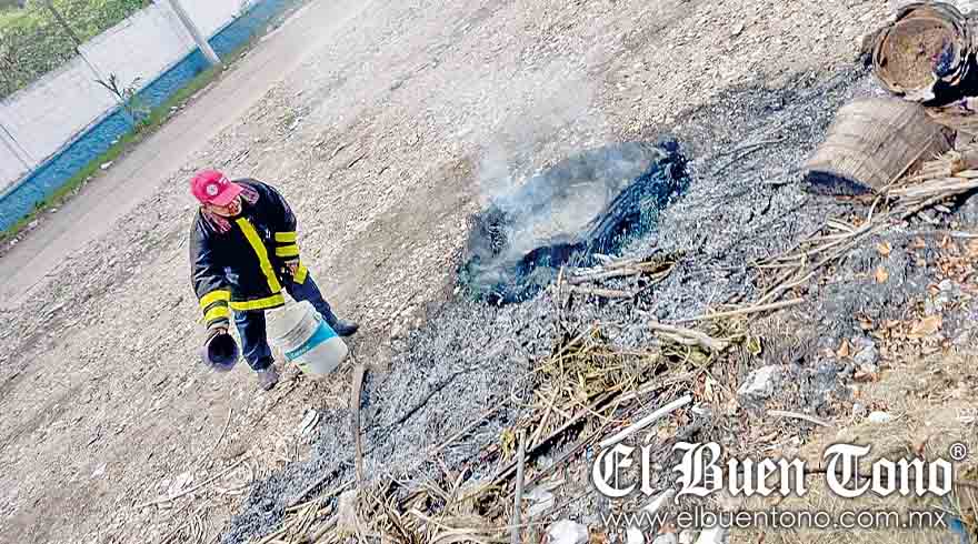 Atoyac.- Una quema de llantas generó la movilización de elementos de Bomberos, quienes recomendaron a la población evitar dicha práctica, debido a los daños que ocasiona al medio ambiente.