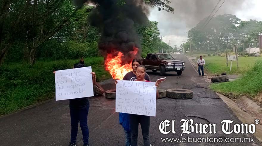 Córdoba.- Habitantes de la comunidad Palenque Palotal y La Luz Palotal cerraron la carretera estatal y quemaron llantas para exigir justicia para un joven que se accidentó el pasado martes.