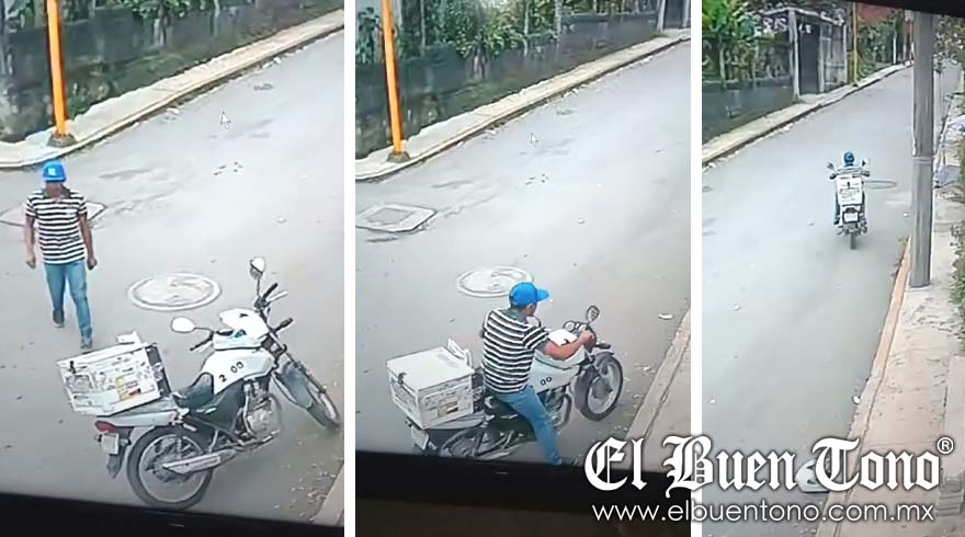 De acuerdo con la grabación de cámaras de seguridad, los hechos ocurrieron a las 17:00 horas, cuando un trabajador repartía tortillas a bordo de su moto y dejó el vehículo pegado a la acera para entregar diferentes pedidos tanto a negocios como a tiendas.