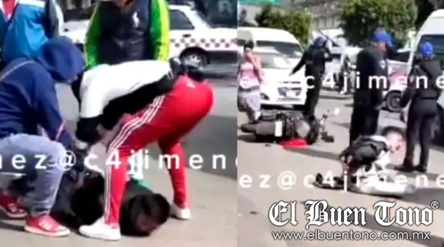 Testigos del lugar, entre ellos vendedores y checadores de transporte público, intervinieron rápidamente para socorrer a la mujer. Tras detener al sospechoso, los presentes lo golpearon y lo ataron, aprovechando la situación para burlarse y celebrar su captura.