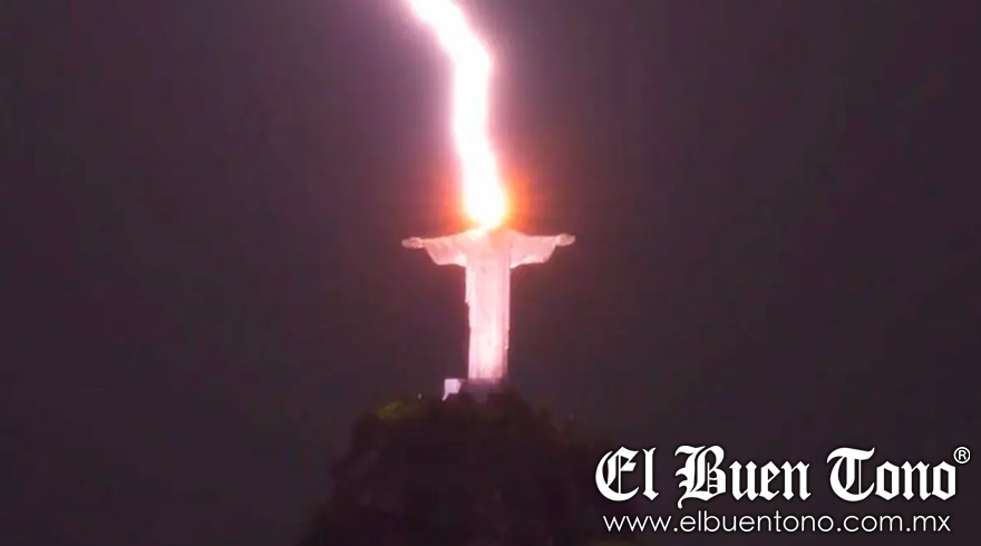 Brasil.- El famoso “Cristo Redentor” de Río de Janeiro, fue alcanzado por un rayo durante una tormenta el viernes. La impactante imagen se viralizó en redes sociales. En ella se observa al luminoso rayo dar justo en la cabeza de la escultura de 38 metros de altura.