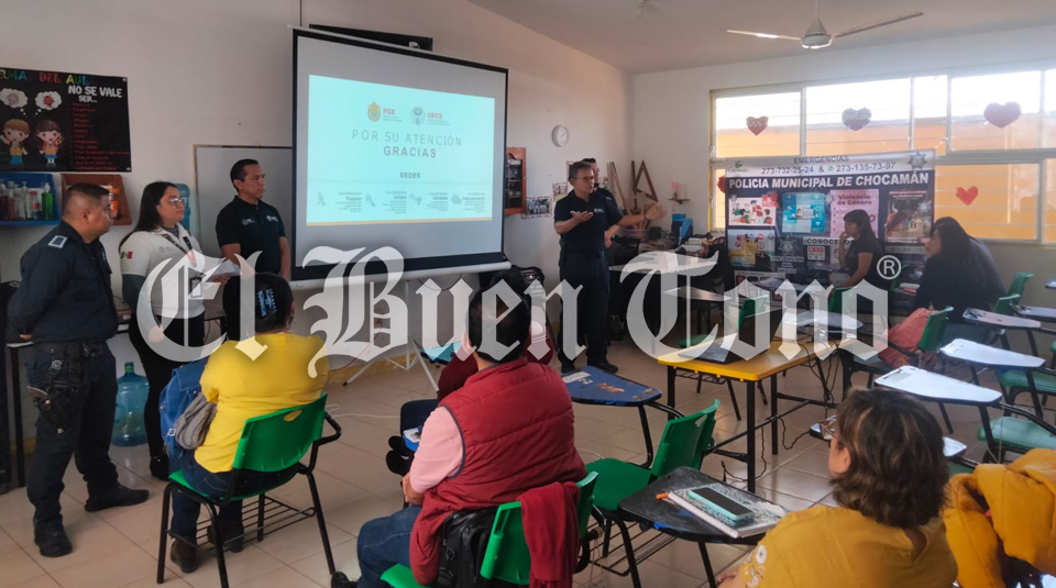 Chocamán.- Con el objetivo de fortalecer la seguridad y proteger a la comunidad ante posibles situaciones de secuestro y extorsión telefónica, la Policía municipal llevó a cabo pláticas de prevención en la Telesecundaria Alfredo V. Bonfil.
