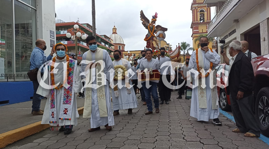 Después de dos años de pandemia, esta celebración religiosa se retoma en Orizaba y San Miguel Arcángel el patrón de Orizaba, es acompañado por San Pedro, San Pablo y San Marcial, los mayordomos de esta celebración eucarística, al término de esta procesión los artesanos de Tequila realizarán el levantamiento de arco principal que adornará la catedral de Orizaba.