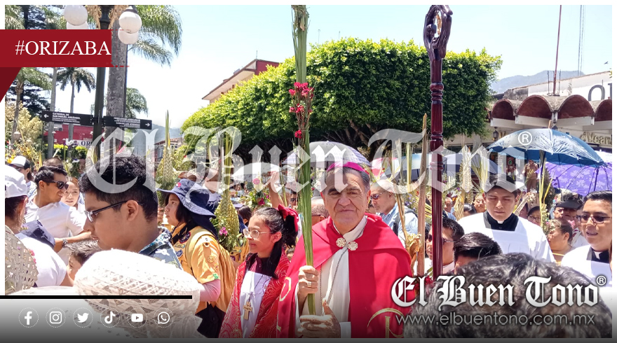 Orizaba, Ver.- Desde la Alameda Francisco Gabilondo Soler Cri-Crí el obispo de la diócesis de Orizaba, Eduardo Cervantes Merino dio inicio la Semana Santa 2025, en donde previo a una oración, bendijo los ramos de la feligresía presente, de diversas comunidades y decanatos.