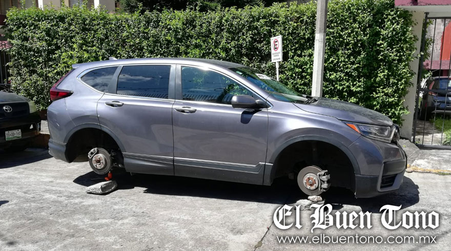 Córdoba. – Una camioneta apareció la mañana de este sábado sin llantas, en la calle 3 y avenida 15 del fraccionamiento Alameda, hasta donde llegaron ladrones y la dejaron sobre piedras.