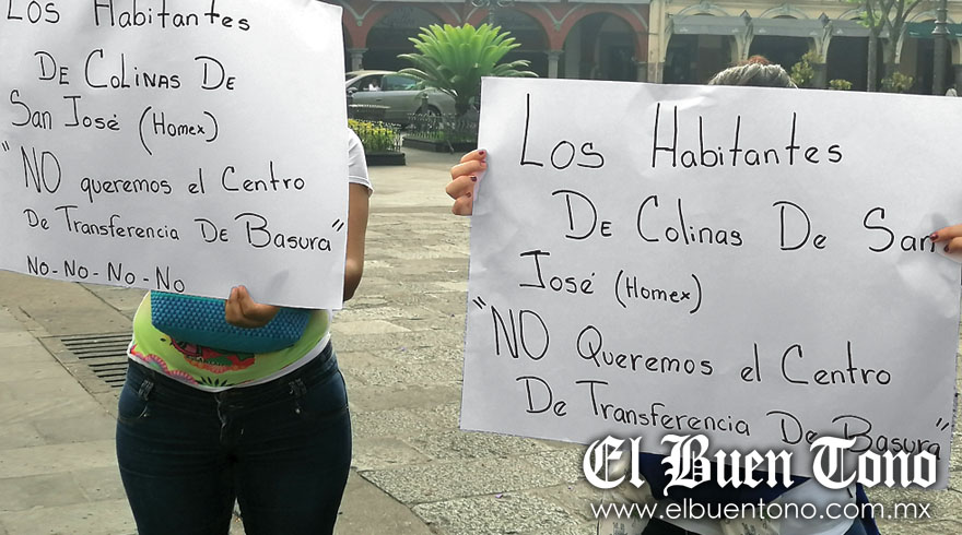 CÓRDOBA.- Vecinos de las colonias San Martín, San José de Tapia y Colinas de San José, Colonia Esperanza, Trapiche y Homex, se manifestaron ayer por la mañana en contra de la instalación de un basurero, el cual el Gobierno del Estado en coordinación con el Ayuntamiento pretende instalar cerca de sus casas.