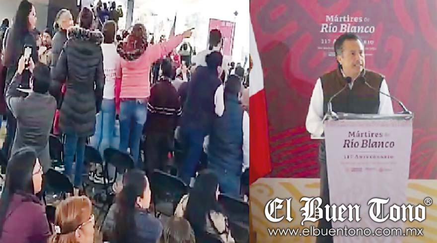 Río Blanco.- El gobernador del Estado, Cuitláhuac García Jiménez, fue abucheado durante su intervención en el evento del 117 Aniversario de los Mártires de Río Blanco. Cuando el maestro de ceremonias presentó al mandatario estatal, la muchedumbre empezó a silbar y gritar “fuera”.