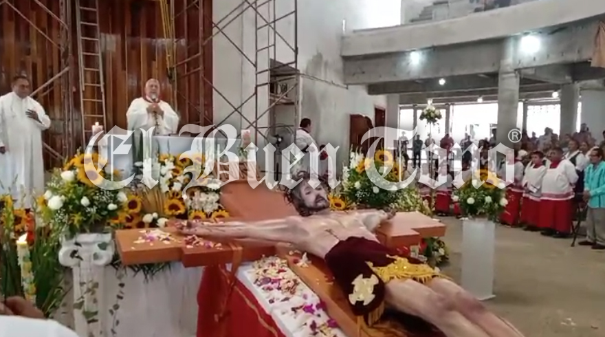 Amatlán.- Los fervientes católicos participan de la eucaristía de recibimiento y colocación en el altar de la imagen Jesucristo en la iglesia de Guadalupe en la congregación de Guadalupe La Patrona, está celebración la realiza el obispo merito Eduardo Porfirio Patiño Leal.
