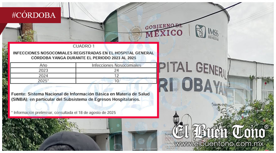 El Hospital Regional de Córdoba “Yanga” ha reconocido la presencia de infecciones intrahospitalarias durante los años 2023, 2024 y 2025, según información proporcionada por la Dirección de Planeación y Desarrollo de los Servicios de Salud de Veracruz (SESVER) en respuesta a una solicitud de acceso a la información.