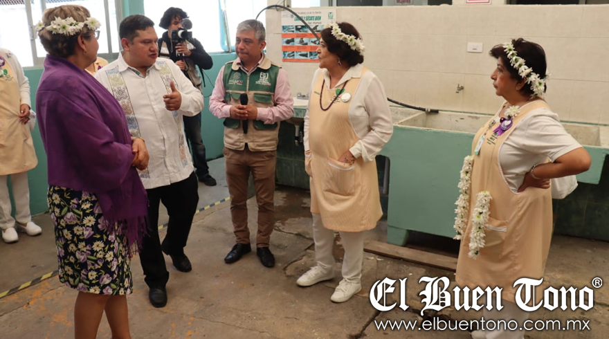 Al llegar las autoridades fueron recibidas por la ceremonia del Xochicoscatl, ritual de honor para dar la bienvenida a autoridades, así como música tradicional; el recorrido inició en el Hospital para continuar por el Albergue Comunitario, donde se montó una exposición fotográfica de los trabajos de rehabilitación tras la inundación.