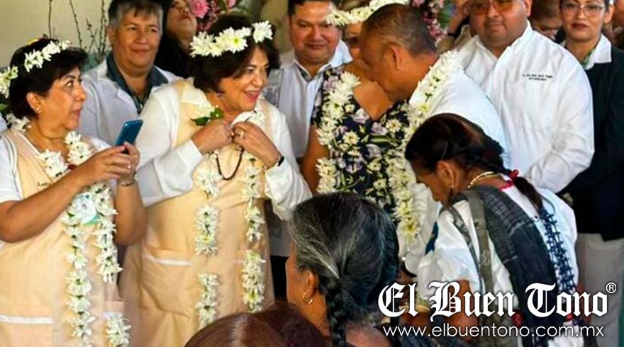 Región.- Con la finalidad de conocer el avance de los trabajos de recuperación del Albergue Comunitario del Hospital Zongolica del Programa IMSS-Bienestar, la Presidenta Honoraria del Voluntariado IMSS, doctora Alejandra Aburto de Robledo, llegó a la Sierra acompañada de la titular del Instituto Mexicano del Seguro Social (IMSS) en Veracruz Sur, doctora María Magdalena Chiquito Rivera.Al llegar, las autoridades fueron recibidas por la ceremonia del Xochicoscatl, ritual de honor para dar la bienvenida a autoridades, así como música tradicional.Las lluvias del 4 de agosto de 2023, inundaron las instalaciones del Hospital y del Albergue, causando daños en la infraestructura y mobiliario, tanto personal IMSS como habitantes de Zongolica se enfocaron en limpiar, sanear y reacondicionar los espacios. La titular del IMSS en Veracruz Sur hizo entrega a la doctora Alejandra Aburto de Robledo ded un reconocimiento por su generosidad, solidaridad, empatía y vocación de servicio en beneficio de la población.