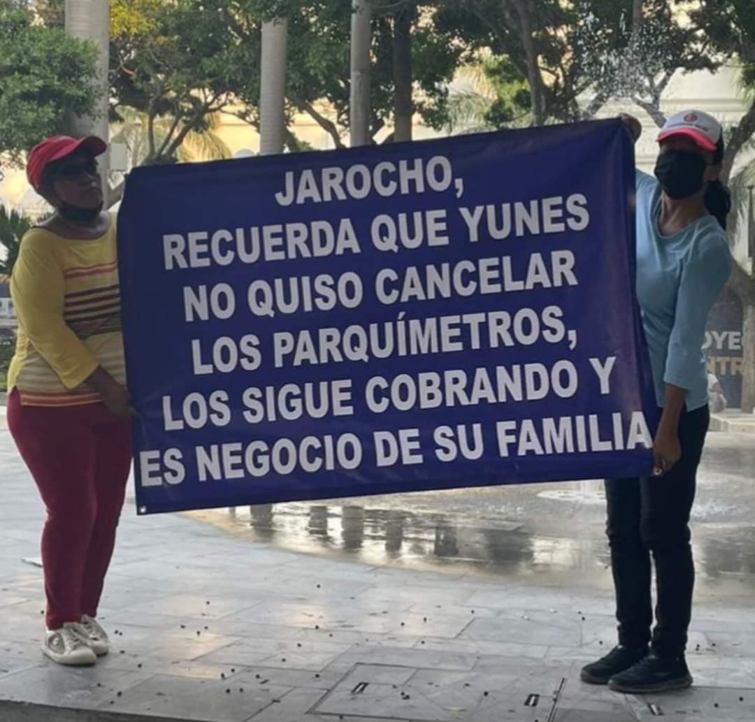 Veracruz.- Previo a la jornada electoral a desarrollarse el próximo domingo un grupo de ciudadanos del puerto de Veracruz con mantas y carteles en las principales avenidas de la ciudad recriminaron a los Yunes, quienes gobiernan este municipio a través de Patricia Lobeira, esposa de Miguel Ángel Yunes Marquez, el cobro de los parquímetros que son un negocio redondo y que afectan diariamente a los ciudadanos y turistas.