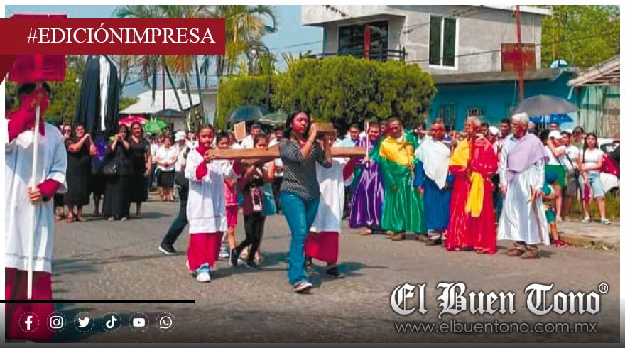 Paso del Macho.-  Con devoción, los fieles católicos se sumaron al Viacrucis, una de las celebraciones más emblemáticas de la Semana Santa, que recuerda el sacrificio de Jesucristo, quien dio su vida para salvar a la humanidad.